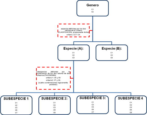 Ordenación formal de una clasificación y de una taxonomía per gennus et differentiam(Figura N°2)