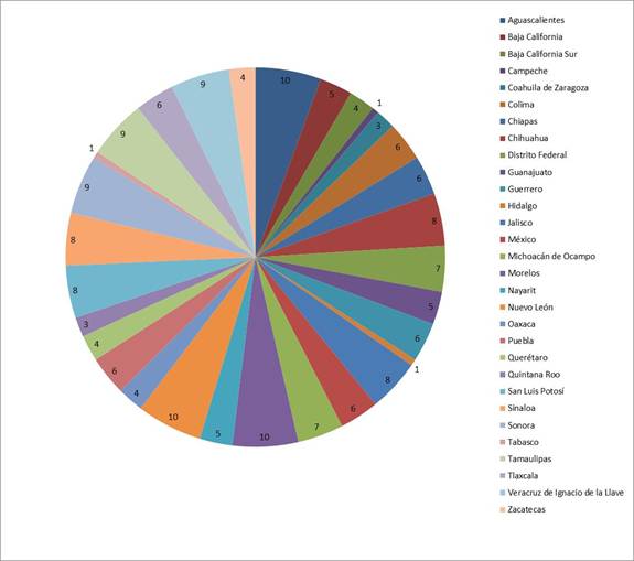 distribuciones de frecuencia respecto a los 31 estados y el Distrito Federal.