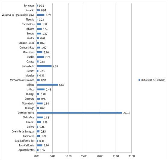 entidades federativas, denota la recaudación fiscal en cada uno de los 31