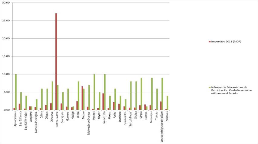 por concepto de impuestos y el número de mecanismos de participación utilizados