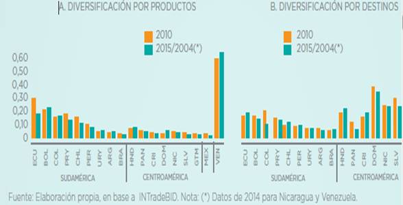 Bolivia, Colombia o República Dominicana, la concentración por productos se