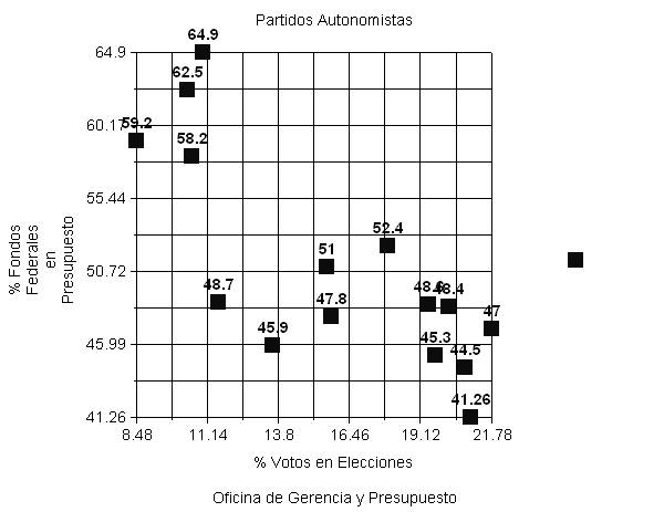 Tabla 1.2 Votos Autonomistas por % Fondos Federales en Presupuesto