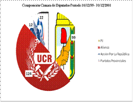 En octubre de 1983, los resultados de las elecciones introdujeron una especial configuración del poder institucional: La Unión Cívica Radical (UCR), no logró contar con mayoría en el parlamento. Sobre un total de 254 escaños en la cámara de diputados obtuvo una ajustada mayoría logrando 129 legisladores; la cual perdió en las elecciones de termino medio del año 1987. Por otro lado, en la Cámara de Senadores de la Nación obtuvo 18 de los 46 escaños, mientras que el Partido Justicialista ocupó 21 bancas.